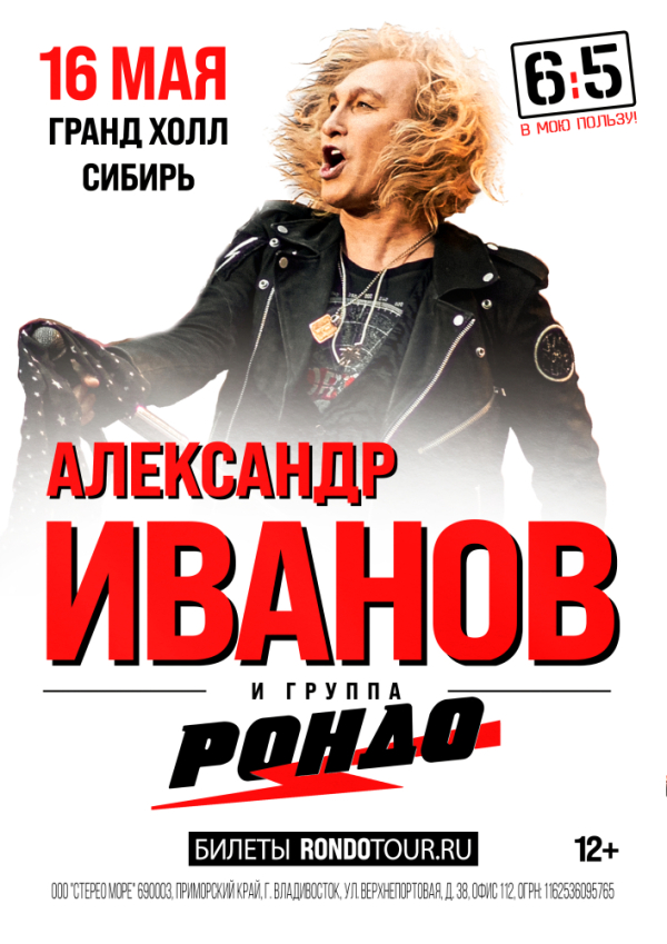 Александр Иванов и группа «Рондо» представляют новую концертную программу «6:5 в мою пользу», приуроченную к 65-летию артиста. На протяжении всей карьеры Александр сохраняет фирменный почерк — музыкальную точность, сценическую пластику и постоянное стремление к живому контакту с аудиторией. На концертах он то взрывает зал шквалом энергии, зажигая под классические рондовские "боевики", то умело вызывает у зрителя глубокие чувства через пронзительные баллады. Именно этот выверенный переход от драйва к лирике составляет сущность его мастерства, и каждый номер дарит подлинное ощущение праздника.