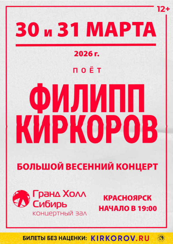 Этой весной Филипп Киркоров вновь соберет своих поклонников и друзей на особенное мероприятие — 2 больших концерта 30 и 31 марта в Гранд Холле Сибирь . В программе — грандиозная сценография, завораживающие спецэффекты, множество ярких костюмов и неповторимых образов. И, конечно же, культовые песни, которые знают и любят все: «Зайка моя», «Снег», «Жестокая любовь», «Я за тебя умру», «Единственная моя», «Атлантида» и многие другие.