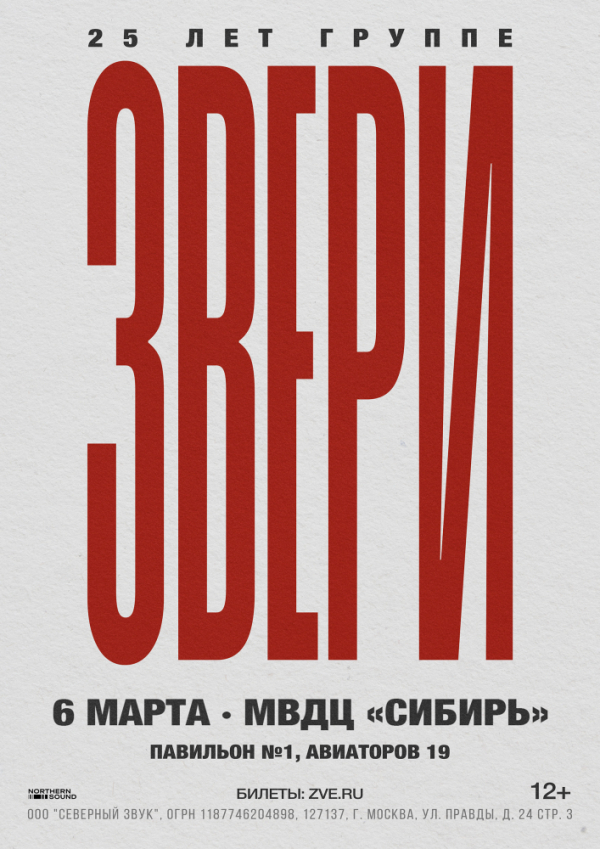 Зрителей ждет специальная программа — прозвучат как нестареющие хиты, давно ставшие классикой («Все, что касается», «Районы-кварталы», «Напитки покрепче», «До скорой встречи», «Танцуй»), так и знаковые синглы из поздних релизов. На счету «Зверей» уже шесть EP и девять полноформатных альбомов, многие треки из которых годами не сходили с ведущих строчек российских чартов. Последний LP «Фолк» вышел в сентябре этого года.