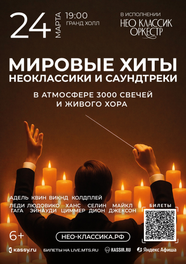 Неоклассик оркестр представляет новую концертную программу — мировые хиты неоклассики и саундтреки. 3000 свечей, живой хор и расширенный симфонический состав создают атмосферу полного погружения, где мощь оркестра соединяется с объёмом хора, а зал наполняется мягким светом тысяч огней.