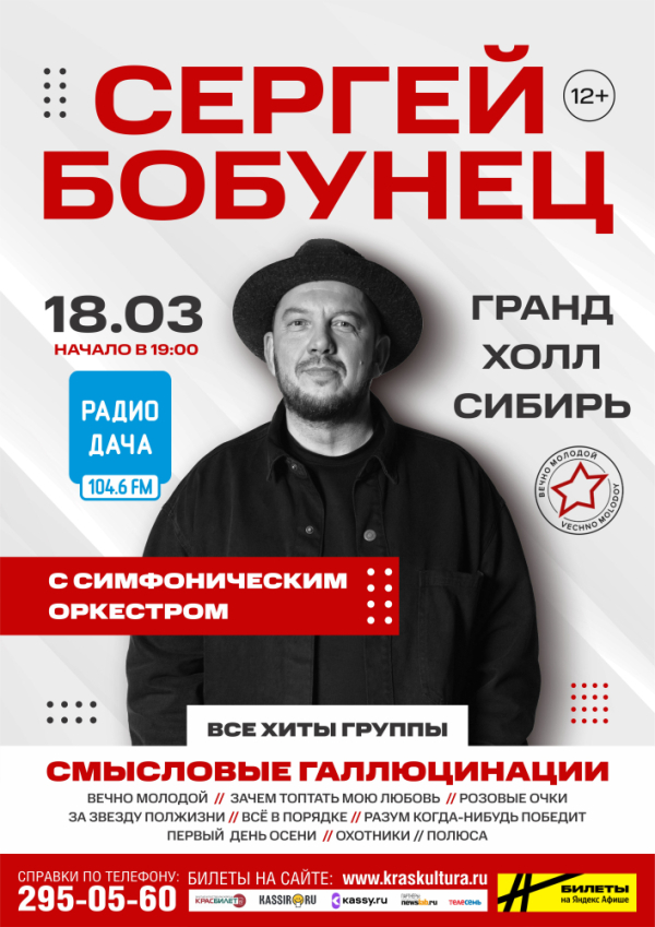 В условиях постоянно меняющегося мира каждому из нас нужна опора. Надежное плечо, на которое можно опереться в минуты душевного смятения. Песни Сергея Бобунца – тот самый творческий монумент, к которому многие поколения нашей страны обращаются в самые разные моменты жизни – и в самые счастливые, и в самые непростые. Пережив за более, чем тридцатилетнюю музыкальную карьеру немало потрясений, Сергей Бобунец смог сохранить в себе веру в людей, силу слова, и тот простой факт, что за каждой холодной зимой всегда приходит весна. Этими откровениями он щедро делится со своими слушателями, выходя на сцену и смело заявляя: мир продолжает любить несмотря ни на что. Если вы еще в этом сомневаетесь – приходите на концерт и убедитесь сами.