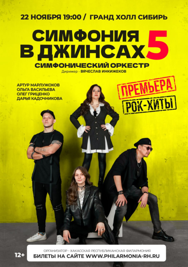 Премьера пятой «Симфонии в джинсах» Хакасской республиканской филармонии в Красноярске обещает стать настоящим музыкальным событием года для всех поклонников симфо-рока. Событием, которое объединяет настоящую мощь рок-музыки с великолепием симфонического звучания!