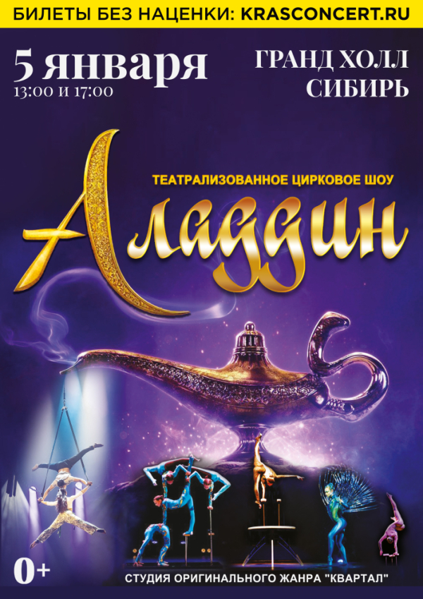 Новое шоу "Алладин" заставит ваши сердца биться в унисон с ритмом восточной сказки. Подарите себе и своим близким незабываемый предновогодний подарок, наполненный волшебством и яркими эмоциями!