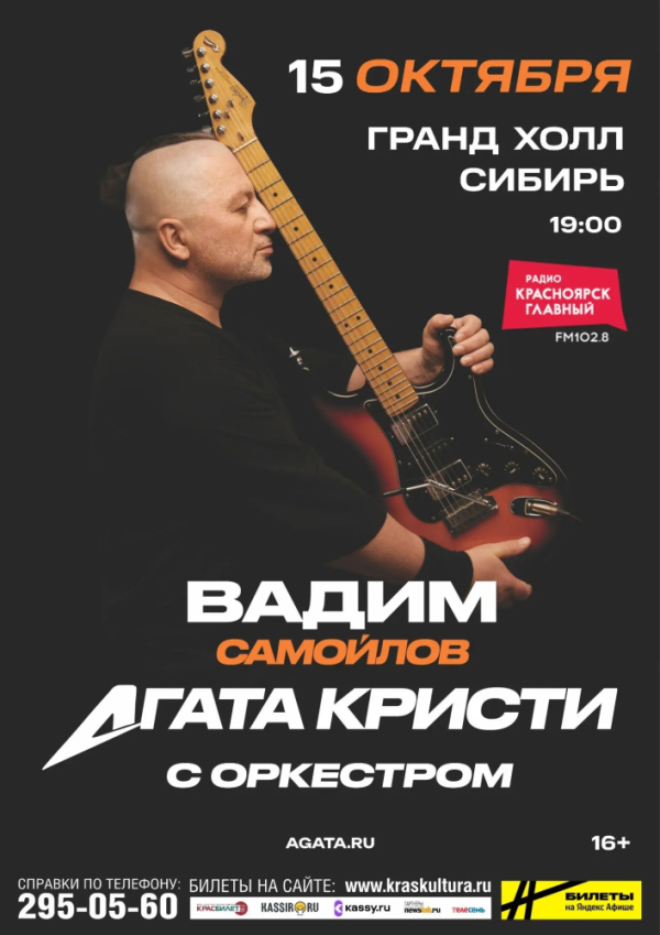 Вадим Самойлов/Агата Кристи с большим концертом в сопровождении симфонического оркестра 15 октября на сцене Гранд Холл Сибирь!