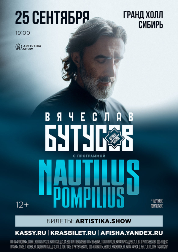 До встречи 25 сентября в Гранд Холл Сибирь на большом концерте Вячеслава Бутусова и «Ордена Славы», посвященному легендарной группе Nautilus Pompilius.